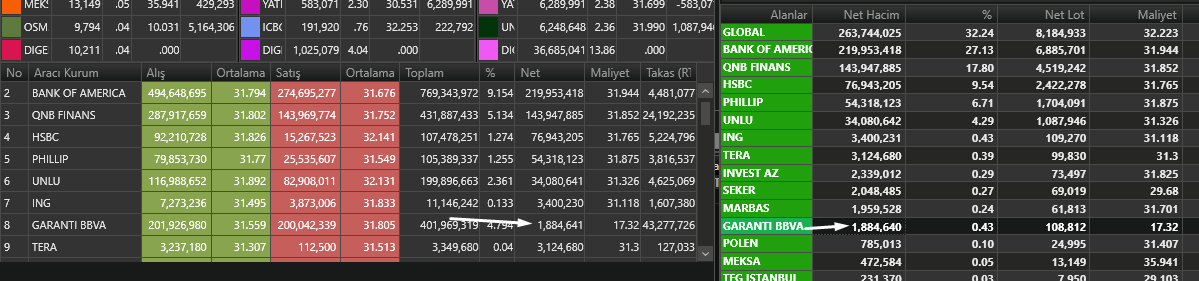 Aracı kurum dağılımı ve para giriş çıkış ekranındaki kurum sayılarının aynı olmasına dikkat ediniz. GARAN sembolü için aşağıya örnek bir çalışma ekledim. İnceleyip karşılaştırabilirsiniz.