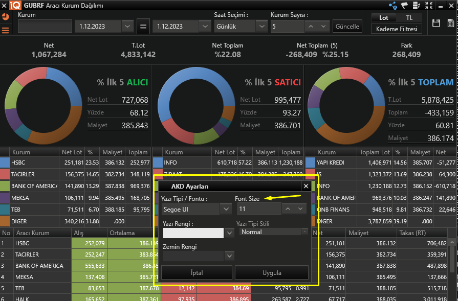 Matriks IQ yazı boyutunu ve rengini nasıl değiştiriyoruz?