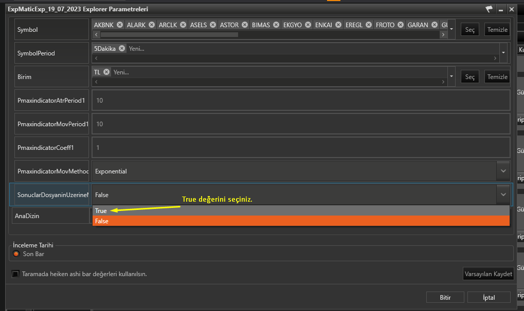 Tarama sonuçlarına göre emir gönderimleri için strateji(al/sat) robotuyla eş zamanlı çalıştırmanız gerekmektedir. Tarama sonucu çıkan sonuçlar stratejiye iletilecek ve al/sat işlemleri gerçekleşecek.