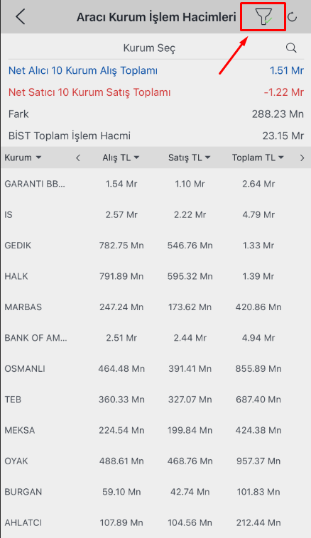 Aracı kurum işlem hacimleri ekranında 10 kuruma kadar listeleyebilirsiniz.