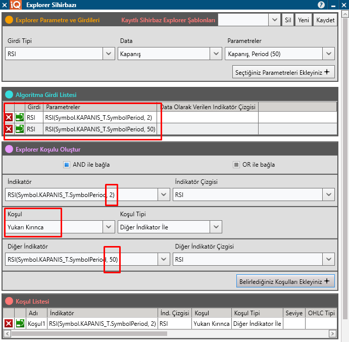 rsi 50 yi yukarı keser şartı matriks iq da nasıl yazılır
