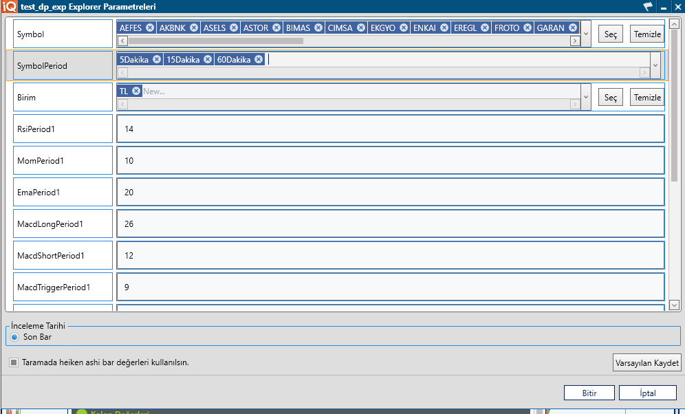 bu değerlere göre Matriks Explorer da 5 dk 15 dk 60 dk lık yani multi frame tarama yapmak istiyorum yardımcı olabilir misiniz ??