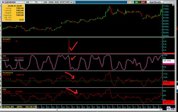 Teşekkür ederim, formülün içerik yapısını anlamak için soruyorum. Burada RSI düşüş tepeler ve MOMENTUM düşük tepelerin olduğu bölümler hangileri?