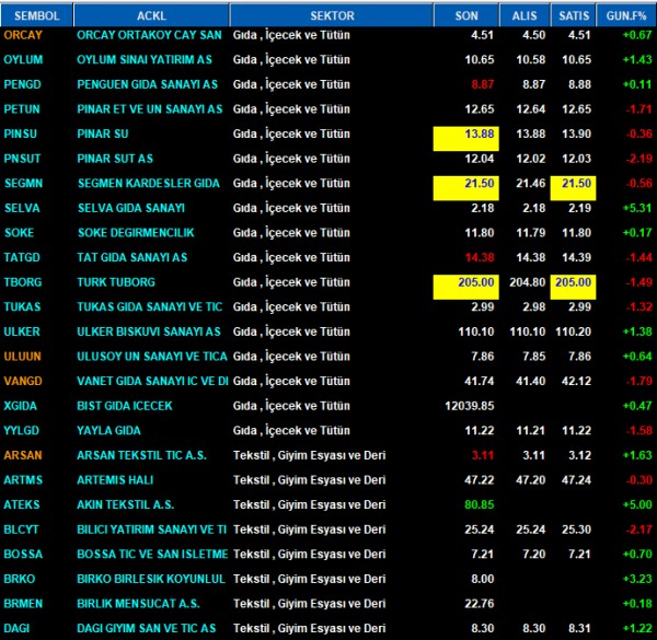 sektör başlığını ekleyerek üzerine 2 kere tıklayarak sıralama yaptırabilirsiniz,