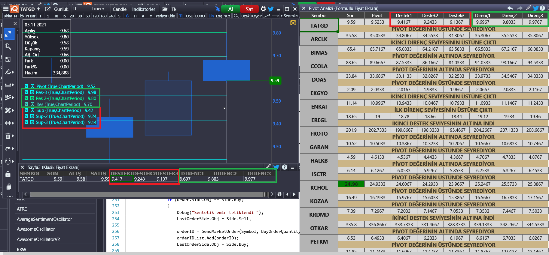 Merhaba Pivot indikatörü nün ayarlarını mı yapamıyorum anlayamadım pivot destek ve dirençler pivot analizi değerlerinizle uyuşmuyor pivot destek direnç seviyeleri benim exel hesaplamam la pivot analizi aynı çıkıyor seans içerisinde destek ve dirençleri anlık görmek istediğimde pivot indikatörünü kullanmak doğru sonuç olmuyor her gün  pivot çizgilerini grafik üzerine çiziyor ve yine her gün düzeltiyorum  işim çok zorlaşıyor. Birde önerim var olabiliyorsa eğer ekranın solundaki grafik bilgisi etiketi gibi bir etiket olsa etiket üzerinde pivot indikatörü bilgileri olsa görmek isteyen açabilse istemeyen kapatsa etiket üzerindeki bilgileri ilgili grafiğin farklı periyotlardaki pivot bilgilerini gösterebilse bence mükemmel olurdu.